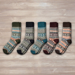 Our Arne set is up for the challenge. With five snug pairs of socks in wonderful earthy and jewel tones, it will strengthen your bond with nature and ensure your getaway is as sung as can be.