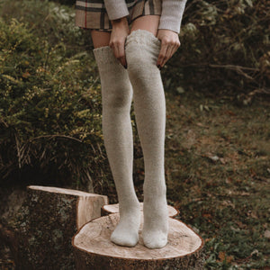 Over-the-knee socks offer extended warmth and coverage, making them perfect for added leg protection in colder weather. Given their length, over-the-knee socks go very well when paired with tall boots, skirts, and dresses. They're also made to last and stay up on their own, so you don't have to constantly pull them up or use garters to keep them in place.